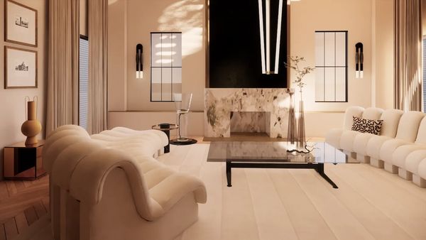 A harmonious blend of noble materials and iconic design. This space redefines modern living through the balanced use of marble, wood, and refined textures.